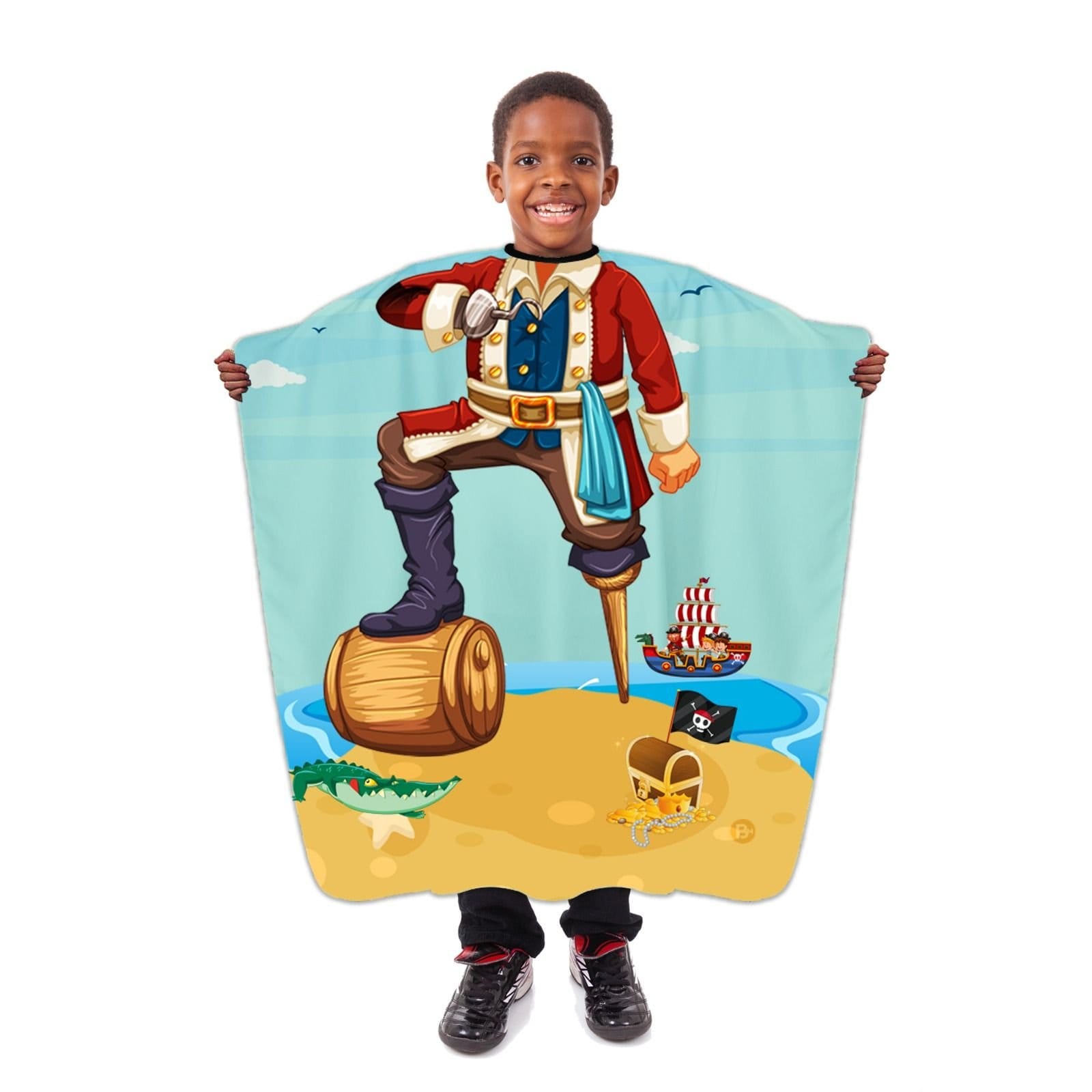 Duik in de wereld van piratenavonturen met de Piet Piraat Cape, een speels en opwindend kostuum verkrijgbaar bij Barberdepot. Deze kleurrijke cape neemt kinderen mee op een reis over de zeven zeeën, waar ze zich kunnen verkleden als dappere piraten en hun eigen verhalen van schattenjachten en zeeslagen kunnen bedenken.